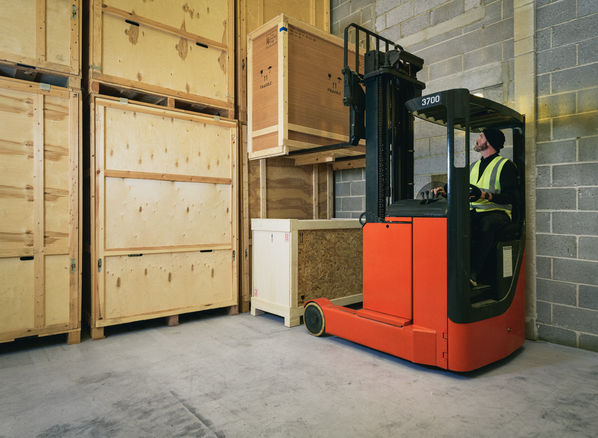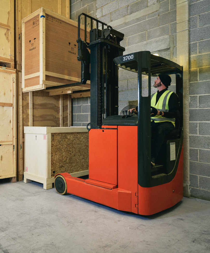 We have purpose built picture racking bays for large or small artworks, industry standard 8ft x 7ft wooden storage crates and pallet racking for furniture and other large items.